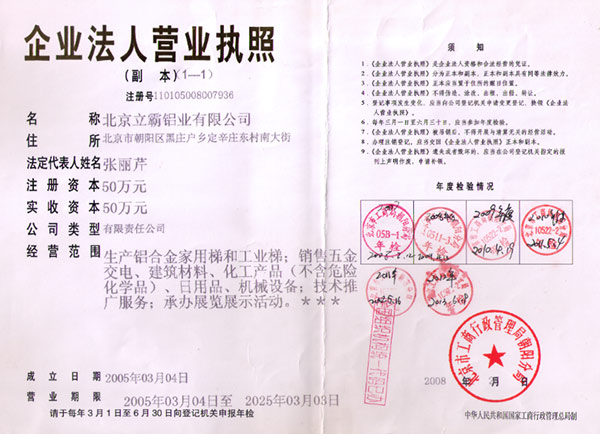北京立霸鋁業(yè)有限公司是集研發(fā)、生產(chǎn)和銷(xiāo)售各種鋁合金工業(yè)型材、管材、板材、鋁合金梯子材料及梯子配件、鋁合金梯子、絕絕梯子、鋁合金液壓升降平臺(tái)等系列產(chǎn)品的專(zhuān)業(yè)廠家。